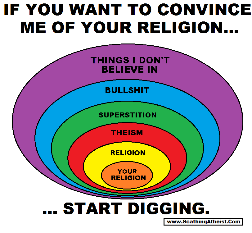 After all, if you’re not willing to pray to every imaginable God, follow the rituals and sacrifices described for them exactly, devote endless hours to it and self-flagellate, haven’t you already admitted that prayer is bullshit?